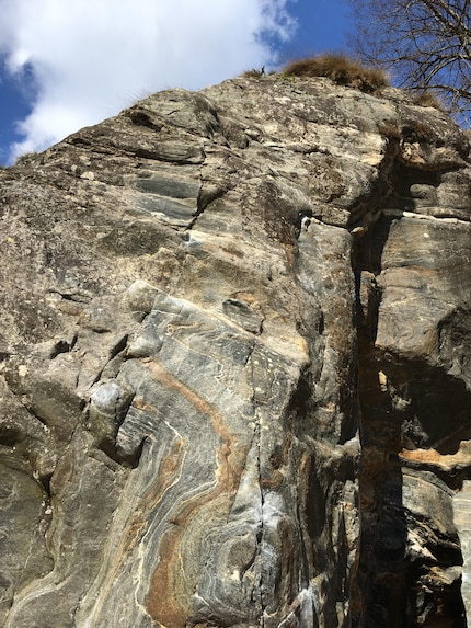 Questo boulder è uno dei classici di Brione. Tuttavia, oggi Kevin lo scalerà per la prima volta. Il livello di difficoltà è indicato come 7C sulla scala Fontainebleau. Quanto è difficile? Ci arriverò più tardi. È un highball. È il termine che indica i massi molto alti. Posso solo stimare l'altezza reale. È alto circa otto metri all'uscita e probabilmente circa dodici metri in totale.