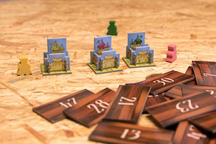 Ora devi tirare a sorte per determinare quale tessera appartiene a quale giocatore. Per farlo, un giocatore raccoglie tutti i pezzi di legno e li lascia cadere uno a uno a caso. Questo determina l'assegnazione delle tessere del domino dall'alto verso il basso. Quattro pezzi vengono quindi estratti di nuovo dalla torre e posizionati nello stesso ordine crescente.