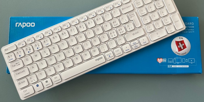 Non ho ancora deciso se rimanere con la MX Keys o passare definitivamente alla Rapoo 9700. Per me sono uguali nell'uso quotidiano. Quindi, per ora uso entrambe. Se non altro perché voglio testare la durata delle etichette incollate sui tasti. Se credi nei buoni adesivi e vuoi risparmiare un po' di soldi, Rapoo offre una tastiera da ufficio davvero buona.