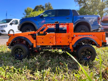 Confrontando il Raptor e il Raptor Lego, la prima cosa che mi colpisce è il colore. Il vero pick-up esiste soltanto in un colore chiamato Race Red, che è praticamente un rosso. Invece il Raptor Lego è arancione. È vero che in Svizzera esiste un Ford pick-up più o meno arancione, ma è il Ford Ranger, non il Ford F-150. Il Ranger esiste anche in un’edizione Raptor. Si differenziano soprattutto per le dimensioni.