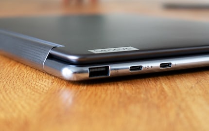 È anche inclusa una penna di metallo, che grazie alla sua forma esagonale è piacevole da tenere in mano come una matita. Puoi ruotare il display fino a 360 gradi prima di iniziare a scarabocchiare. Quando disegni e scrivi, lo schermo assomiglia alla carta. Rispetto alla Surface Pen di Microsoft, con la penna Lenovo ho la sensazione di scrivere su una superficie ruvida e mi piace di più.