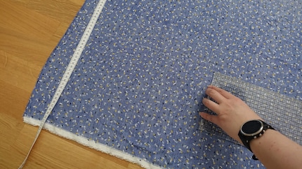 Per il ritaglio, stendi i tessuti a filo l'uno sull'altro in modo da ottenere due pezzi della stessa dimensione. Piegane uno a metà nel senso della lunghezza. Ora usa un righello per misurare 41 cm dalla cintura (è la metà della lunghezza del cavallo) e 10 cm dal lato interno (sottrai la stessa larghezza dei glutei di cui sopra). Usa un gessetto per disegnare una mezzaluna sul tessuto nella sezione misurata. Ritagliala e ripeti il procedimento per il secondo pezzo di tessuto.
