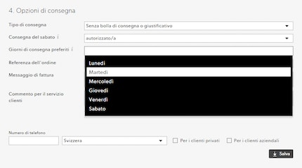 Conosci la situazione, vero? È il prodotto che stai cercando, il prezzo è formidabile e la spedizione è super veloce. L’unico problemino è che il postino viene a recapitarti il pacco proprio il giorno in cui non sei a casa. Che nervi...! Ora però su digitec.ch puoi scegliere uno o più giorni di consegna preferiti. Dal lunedì al sabato effettuiamo consegne a domicilio per tutti i prodotti disponibili nel nostro magazzino, quando preferisci tu.