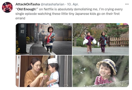 Hiroki è uno dei protagonisti del reality show giapponese «Old Enough!», un format cult che esiste da 30 anni. Ci sono solo due episodi all'anno, ma durano tre ore ciascuno e la trama è sempre la stessa: bambine e bambini dai due ai sei anni fanno commissioni da soli per la prima volta nella loro vita. È molto probabile che ti sia imbattuto nella serie guardando Netflix negli ultimi giorni: il servizio di streaming ha acquistato 20 episodi e ha accorciato/accelerato ogni episodio a circa 15 minuti.
