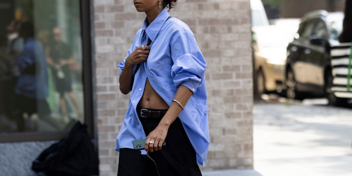 La scorsa settimana è andata in scena la Settimana della Moda a New York. Tra chi ha visitato le sfilate, dominava soprattutto un modo di indossare le camicette: abbottonate in alto, aperte in basso e che cadevano sciolte sul corpo. L'apertura forma una sorta di triangolo che espone la zona addominale.