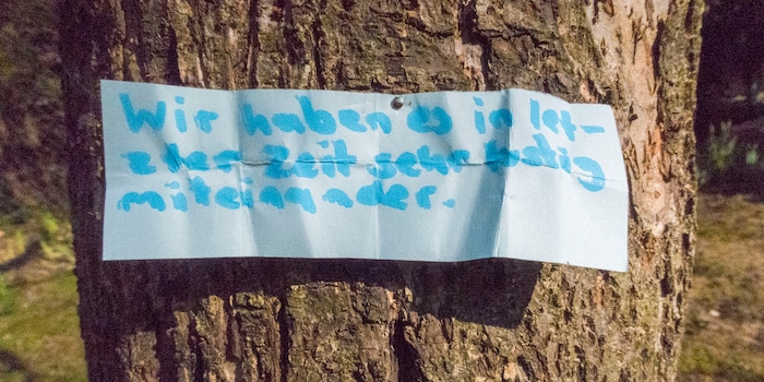 Così sto seduto in giardino respirando l’aria primaverile, il barattolo con i foglietti davanti a me e il biglietto di mia figlia in mano. I ricordi degli ultimi mesi piuttosto complicati, molto presenti, mi fanno sorridere. Sì, ci siamo divertiti spesso insieme ultimamente, nonostante tutto. E sì, so che c’è la guerra. E sì, la pandemia non è ancora del tutto finita. E sì, febbraio è stato troppo caldo e marzo troppo secco finora. E sì, aprile sarà probabilmente entrambe le cose insieme. Per la crisi climatica. Uff.