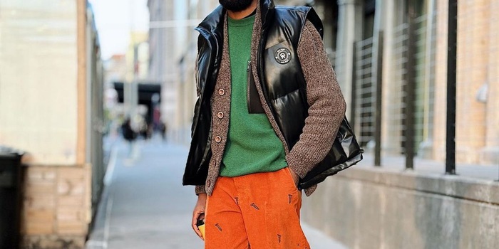 «Ciò che manca in termini di maniche, il gilet lo compensa in termini di opzioni di stile», ha scritto quest'autunno la mia collega Laura nel suo appello per i gilet. A differenza della giacca, non nasconde ciò che c'è sotto, ma lo mette in evidenza. Combinato in più strati, come in questo look dell'influencer Ike Slimster, il gilet a sbuffo è adatto anche alle giornate invernali più miti. E se vuoi stare ancora più al caldo, basta sostituire la maglietta con una camicia di lana merino a maniche lunghe nello strato inferiore.