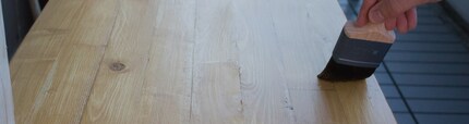 Dopo tutta la polvere e la segatura, la stanza doveva essere pulita a fondo. Ho dovuto usare il normale aspirapolvere e il lavoro è stato sorprendentemente buono. Poi ho usato una piccola spazzola per pulire le due panche. Senza polvere, è arrivato il momento di verniciare. Il colorante per legno di Auro è stato facile e veloce da applicare. Poiché si tratta di un prodotto a base di materie prime naturali, ho applicato le due mani in casa senza preoccupazioni. Dopo la seconda mano, ho ottenuto il colore desiderato. Tra l'altro, lo smalto è disponibile in molti colori.
