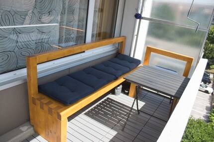 Visualizza tuttiAll'inizio mi sono concentrato sulle dimensioni del balcone. Mi sono subito reso conto che un'intera panca ad angolo non sarebbe passata attraverso la porta del balcone. È stato quindi più intelligente costruire due elementi sciolti. La mia idea di utilizzare il salotto come panca e come lettino è stata incorporata direttamente nei disegni. Sono stati creati i primi schizzi e l'idea si è sviluppata ulteriormente.