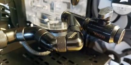 Per migliorare l'aspetto, usiamo tubi rigidi al posto dei tubi flessibili. Con i tubi rigidi è importante una pianificazione meticolosa. Se i tubi sono solo leggermente inclinati nei connettori, il PC subisce una doccia involontaria.