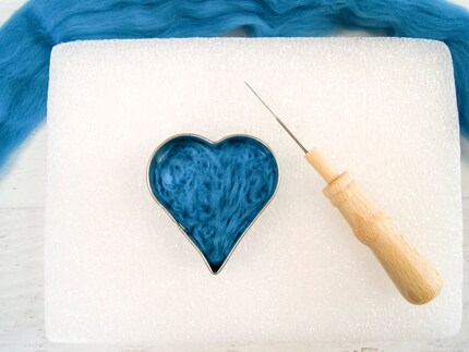 La maggior parte dei bambini e degli adulti si punge il dito con l'ago all'inizio. Fortunatamente, di solito questo non accade. Noterai anche che è meglio muovere l'ago da infeltrimento avanti e indietro vicino al feltro e coprire piccole distanze. Lo stampo per biscotti protegge molto bene le dita. Devi anche assicurarti che l'ago sottile non si rompa. Il modo migliore per farlo è cucire solo verticalmente il feltro. Punzecchia solo leggermente la schiuma in modo da non bucare il tavolo.