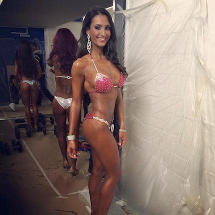 Estensioni dei capelli, una tonnellata di trucco di scena e ciglia finte. Ho pensato che fosse fantastico 😘 La mia amica mi ha dipinto con un liquido marroncino e un rullo da pittura. Il colore viene utilizzato per evidenziare i muscoli sul palcoscenico illuminato dalle ombre. Un colore abbronzato chiaro, inoltre, ti fa sembrare più bella e attraente. Nel backstage chiacchieravo con i miei amici, il mio ragazzo era sempre al mio fianco come fedele compagno e avevo con me un libro e il mio iPhone per distrarmi. All'inizio non ero nervosa, anzi ero molto eccitata e non vedevo l'ora di salire sul palco. Nel backstage c'era una bella atmosfera, perché gli atleti del mio allenatore avevano affittato una stanza tutta per loro. Ho un bel ricordo di quel giorno, anche se è stato più di due anni fa.
