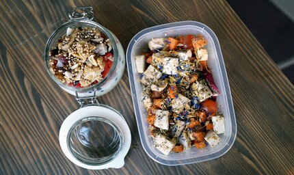Movimento e meditazione non sono sufficienti nell’Haṭha Yoga. Ogni mattina, quando Sabrina va al lavoro, passa un po’ di tempo in cucina. Ogni giorno prepara un muesli, a base di frutta fresca e cereali. Anche la nutrizione è un aspetto dell'Haṭha Yoga.