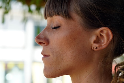 «Se fai yoga una volta alla settimana, il tuo corpo cambia», dice Sabrina Kriesi. La 28enne è seduta su un pezzo di sughero, posizionato su un tappetino di yoga sul pavimento.