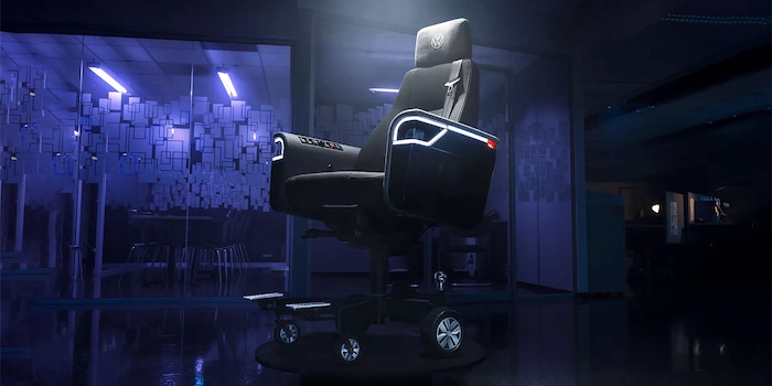 Volkswagen ha costruito una sedia da ufficio motorizzata con un equipaggiamento notevole. Dalle cinture di sicurezza ai lampeggianti e al sistema di assistenza, tutto è incluso. E va a 20 km/h.
