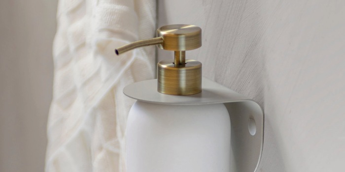 Organizzare gli shampoo per dimensione e colore contribuisce a creare un'immagine uniforme. Ma sarebbe ancora meglio eliminare la confezione da tutti i prodotti e metterli in semplici dispenser. Per il box doccia sono disponibili anche supporti da fissare alla parete in cui deporre i prodotti per la cura. In questo modo sono sempre a portata di mano.