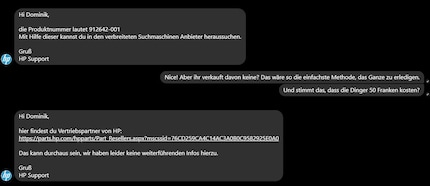 I miei piedini HP corrispondono al numero 912642-001, nome completo del prodotto: «HP Inc. ASSY_ RUBBER FEET». Costano circa 40-50 franchi, a seconda del fornitore. Quattro piedini di gomma. Con un valore effettivo di circa 2 franchi. E con un tempo stimato di consegna di due settimane. No, grazie.