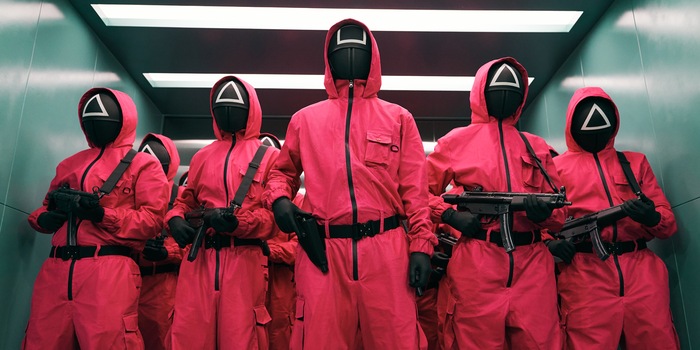 i lavoratori con le loro maschere di triangolo, cerchio e quadrato sono in definitiva solo vittime anonime del sistema capitalista. Mangiare o essere mangiato. Senza volto. Il frontman, un ex vincitore dello Squid Game, d'altra parte, ha usato il sistema per fare carriera nell'anonimato e a spese della sua umanità. Ma i fili sono tirati da altri: i ricchi VIP, che probabilmente non parlano inglese per caso e si nascondono letteralmente dietro una maschera.