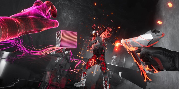 «Synapse» sfrutta anche i trigger adattivi dei controller PS VR2. Se premo il trigger sinistro solo a metà, faccio galleggiare oggetti esplosivi, come i bidoni di petrolio. Se premo il trigger al massimo, i barili esplodono.