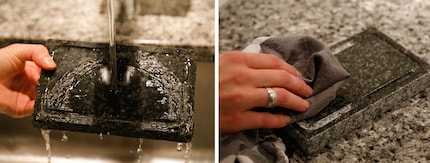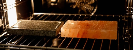 Assicurati di eseguire le seguenti operazioni prima della tua prima sessione di grigliate al tavolo: Sciacqua la pietra sotto l'acqua corrente (attenzione: non usare detergenti!) e asciugala bene. Per sciogliere la tensione all'interno della pietra e aumentarne la stabilità, mettila in un forno freddo e riscaldala a 250°C per 40 minuti. Lascia raffreddare la pietra a temperatura ambiente.