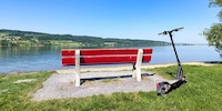 Nel paesino di Gachnang, vicino a una chiesa del XIII secolo, mi imbatto inaspettatamente in un breve tratto di strada con acciottolato. È qui che il sistema di sospensioni del Max G3 D arriva ai suoi limiti. I contraccolpi si sentono chiaramente. Gli ammortizzatori telescopici del Segway ZT3 Pro D, ad esempio, attutiscono molto meglio le irregolarità di questo tipo.