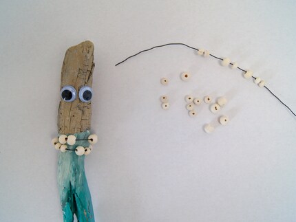 - Prendi un filo di ferro e decoralo con il legno. Se vuoi, puoi anche infilarci delle perline e fissarle.