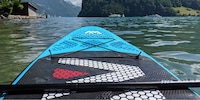 La tavola gonfiabile è ideale per i principianti e i neofiti del Wing SUP. Anche un albero da windsurf può essere avvitato e offre un altro modo di utilizzare la tavola. Tuttavia, non l'ho testato. Sebbene nella confezione sia inclusa anche una pagaia, non consiglierei la tavola per lo stand-up paddling a causa della sua lunghezza ridotta. È troppo corta e troppo rotonda per percorrere distanze lunghe. Per le tavole da paddle la lunghezza è importante.