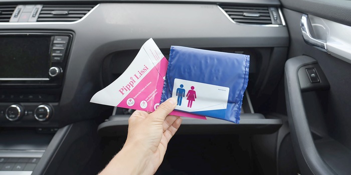 Onestamente, come potrebbe funzionare stando seduti sul sedile posteriore di un'auto in marcia? Un maschio potrebbe essere in grado di farlo in caso di necessità. Ma una femmina? Non riesco a immaginare come potrebbe farlo. La cosa interessante è che sul sito web di Minimus, alla voce «Bambine e donne» si dice esplicitamente che dovrebbe funzionare «in posizione accovacciata o seduta». L'imbuto di cartone, invece, sfoggia lo slogan «Con Pippi Lissi le donne possono farla in piedi».
