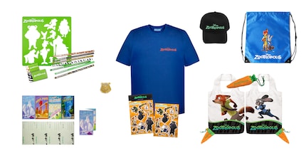 T-Shirt (adulto L, XL), Stationary Set (Set per disegnare con formine), cappellino, set di cartoline, set di autocollanti, Draw String Bag (sacchetto per lo sport), spilla, Shoppers Bag (sacchetto pe la spesa) e due biglietti per il cinema per una proiezione di Zootropolis di tua scelta.
