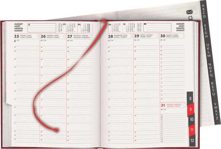 L'agenda Orario è uno strumento di pianificazione versatile, progettato specificamente per le esigenze dei professionisti. Con una suddivisione oraria dalle 07:00 alle 20:00, consente una pianificazione precisa per ogni giornata lavorativa. L'agenda include pagine aggiuntive per panoramiche annuali e mensili, oltre a spazi per appunti, supportando così un'organizzazione completa di appuntamenti e compiti. Un registro indirizzi intercambiabile e un taglio del registro garantiscono una facile gestione e un rapido accesso ai contatti importanti. Il segnalibro consente di navigare rapidamente alla settimana corrente o a note importanti. L'agenda è rivestita in un robusto materiale similpelle, che è sia elegante che durevole, offrendo un aspetto gradevole per un uso professionale.