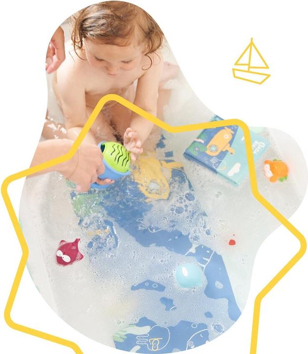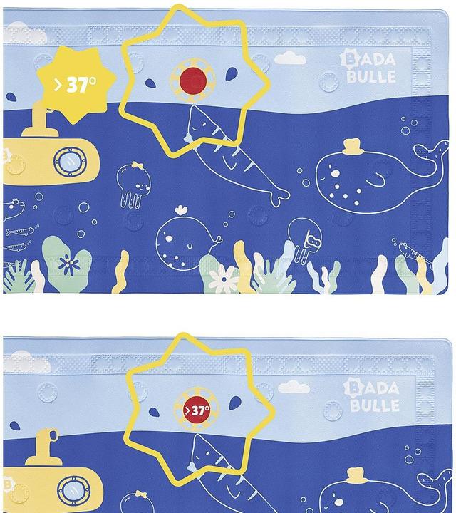 Il tappetino da bagno di Badabulle decorato con eleganti motivi marini funge da protezione antiscivolo e indicatore di temperatura. Ben 82 ventose sotto il tappetino garantiscono una tenuta ottimale e una protezione affidabile contro le scivolate nella vasca da bagno o nella doccia. Basta dare un'occhiata al tappetino per vedere se l'acqua della vasca ha la temperatura giusta. Un indicatore di calore fornisce informazioni sulla temperatura corrispondente a seconda del colore. Accompagna il tuo piccolo monello nelle avventure dei teneri pesci, polpi e balene e trasforma il rituale quotidiano del bagno in un piacere davvero speciale.