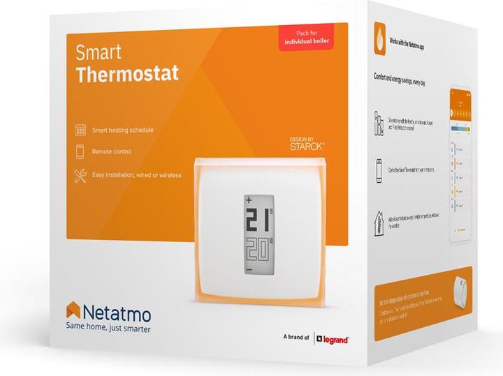 Con il termostato intelligente di Netatmo è possibile risparmiare energia senza dover rinunciare al comfort. Attraverso cinque domande sul tuo comportamento quotidiano, crea un programma di riscaldamento ottimizzato per la tua routine giornaliera. Riscalda la tua casa in modo perfettamente adeguato e solo quando è davvero necessario! Inoltre, è disponibile una modalità assente e una funzione di protezione dal gelo, che adatta il comportamento di riscaldamento in caso di assenze prolungate.