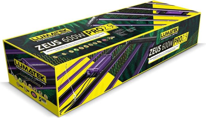 Lumatek Zeus 600W Pro 2,9 LED a spettro completo con un PPF di 1770 µmol/s e un'efficacia molto elevata di 2,9 µmol/J. Nel 2020, la Lumatek Zeus 600W Pro ha stupito il settore della coltivazione con la sua efficacia, praticità e qualità costruttiva. Ora, nel 2021, Lumatek ti avvicina ancora di più alla lampada LED perfetta, la Zeus 600W Pro 2.9. Preparati, il più luminoso è appena diventato ancora più luminoso.