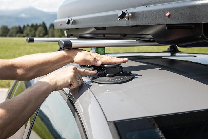 La forma elegante delle barre riduce la resistenza aerodinamica, portando a un minor consumo di carburante e meno rumore. Le barre sono dotate di bracci che utilizzano le ventose TreeFrog e si adattano alle curve del tetto. Questo consente di montare e smontare il portapacchi e tutti gli accessori in pochi minuti.