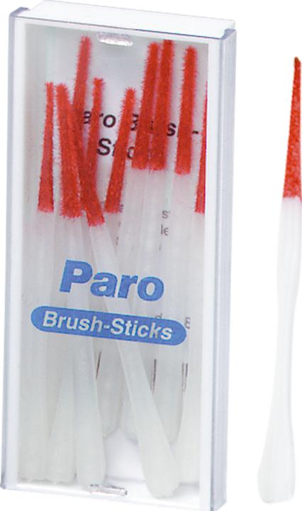 Il cuneo in plastica con spazzola morbida è un prodotto per la pulizia degli spazi interdentali con eccellenti proprietà di pulizia e massaggio. Il paro Brush-Stick è brevettato a livello internazionale. La base sottile del paro Brush-Stick consente di raggiungere praticamente tutti gli spazi interdentali. La superficie a forma di pennello rimuove accuratamente i residui e le placca batterica. Grazie al suo effetto massaggiante, è anche efficace in caso di infiammazione gengivale (gengivite).