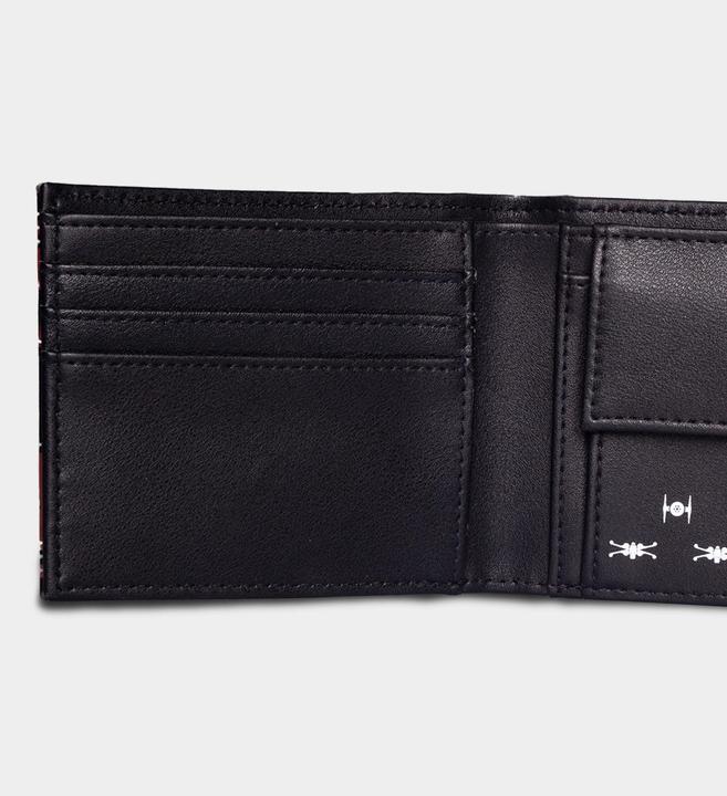 Non riesci mai a decidere chi sia più forte, Darth Vader o Obi-Wan Kenobi? Con questo portafoglio da uomo piegato in due, non dovrai mai scegliere. Puoi vedere i loro due emblemi sul bordo esterno con cool e rilievi in puff. All'interno ci sono anche piccole stampe serigrafiche di cacciatori stellari di Star Wars. Ci sono molti scomparti per carte, un portamonete e una tasca più grande per le tue banconote.